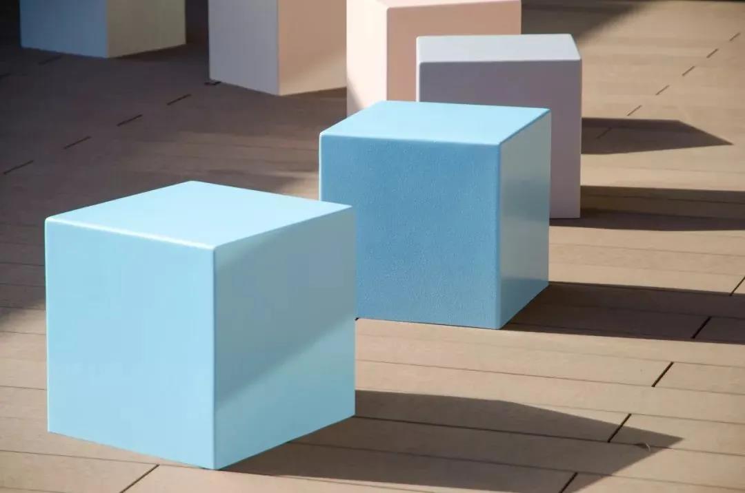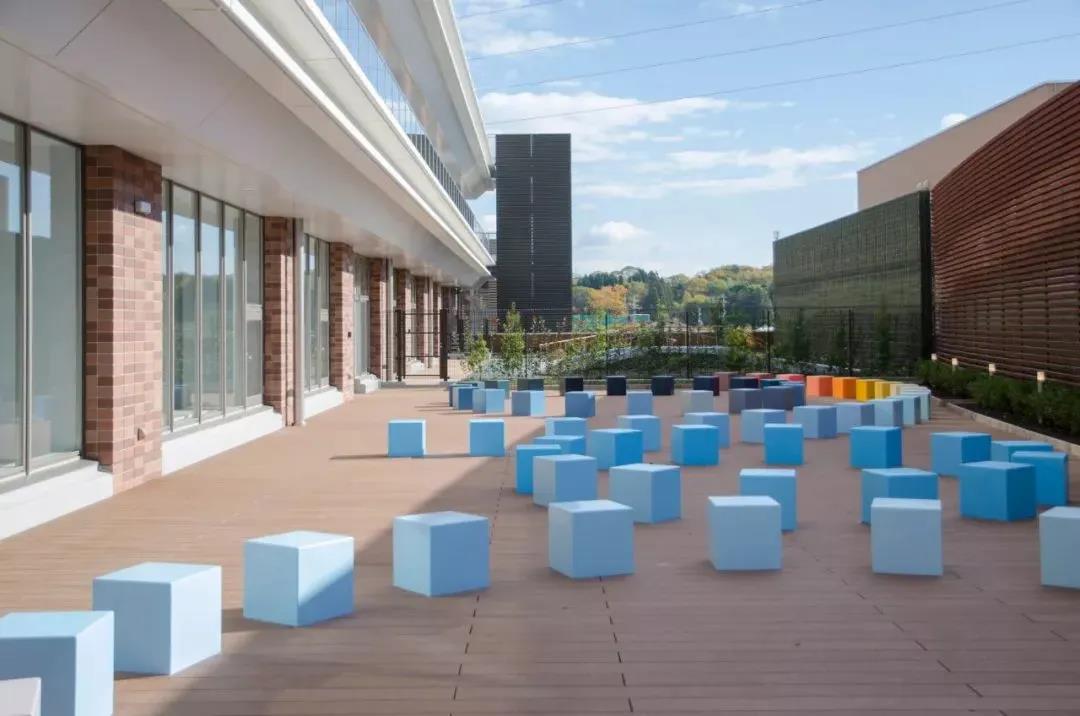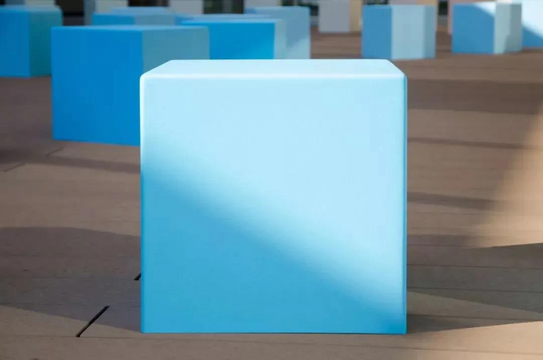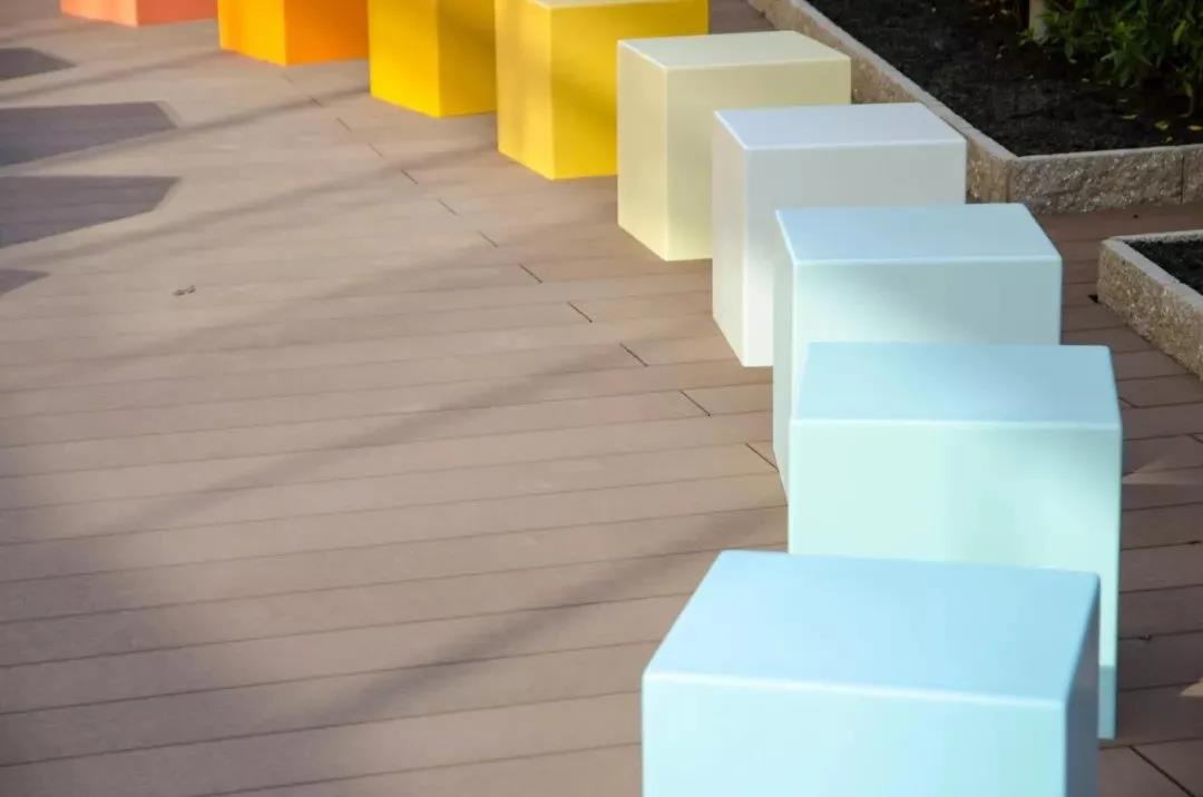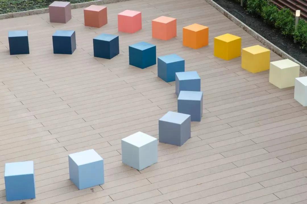 五顏六色的長凳在露天陳設(shè),你可以在一所新的大學(xué)醫(yī)院大樓的屋頂花園里找到它們。這些立方體形狀的