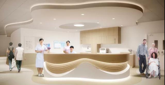 公共空間尊貴感體現(xiàn)首先在于設(shè)計選材,宜采用天然高檔大理石、覆膜木紋鋁復(fù)合板,紋理質(zhì)感好,板幅大,品質(zhì)感強;家具選擇偏向于酒店化,提升空間檔次感,整體色調(diào)溫馨柔軟,加強去醫(yī)療化的體驗感;在門診大廳、腫瘤中心門廳、體檢門廳、電梯廳等區(qū)域,層高配合為3.8米以上,空間大氣檔次感強;在咨詢、導(dǎo)診臺設(shè)無障礙區(qū)滿足不同人群,提升服務(wù)體驗感。
