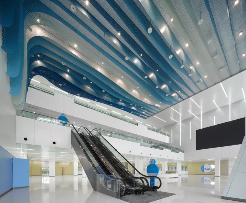 醫(yī)技樓門診空間人流量較大,功能上屬于集約等候、辦理、中轉(zhuǎn)、接待的樞紐性空間,集約滿足未來就醫(yī)功能的信息化體現(xiàn),進(jìn)行人工掛號+線上自組掛號系統(tǒng)、互動屏幕等點位設(shè)置,在營造婦女兒童醫(yī)院氛圍同時,采用簡潔照明系統(tǒng)和耐久易清潔環(huán)保材料,在醒目多變色彩空間中相對更加突出簡潔、白凈,便于識別。