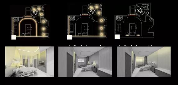 ▲ 圖48 專業(yè)化/人性化:病房的設(shè)計,從平面功能、細(xì)節(jié)設(shè)計、燈光環(huán)境等,均需要換位思考去站在患者的角度作為設(shè)計出發(fā)點。如燈光點位的布置、燈光模式的控制,需要設(shè)計聯(lián)動,與各專業(yè)進(jìn)行合理的配合