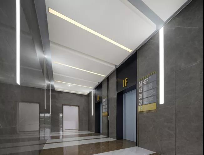 ▲ 圖50 專業(yè)化/尊貴化:綜合樓電梯廳線性燈光氛圍和標(biāo)識標(biāo)牌一體化